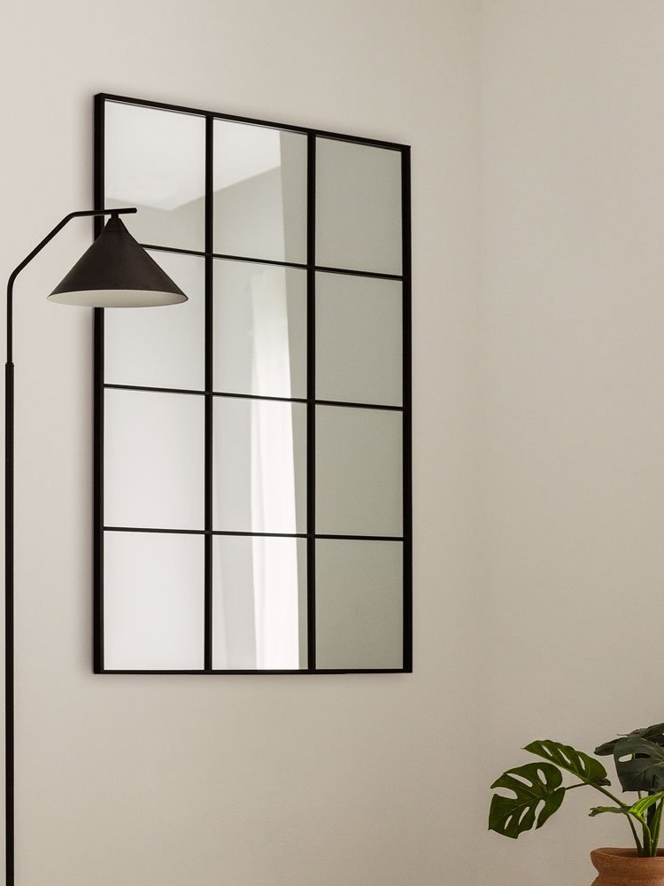 • This elegant rectangular wall mirror features an iron frame that is divided into squares, creating an attractive design reminiscent of a window structure. This aesthetic format gives it a fresh and modern appearance, ideal for any room in the house. The mirror is 3 mm thick, ensuring a high-quality, shiny surface. The iron frame not only provides sturdiness, but also becomes a striking visual element that enhances the space where you wish to place it. The shade of the frame contrasts beautifully with the clear reflection of the mirror, making this item a focal point in your living room, bedroom, or even dressing room. Its versatile design makes it a perfect option for any decor style, whether industrial or modern as well as classic and minimalist.