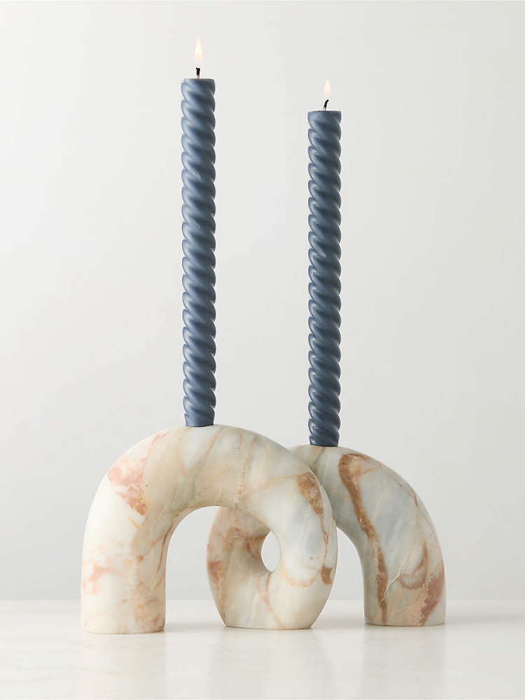 Crafted from marble found exclusively in Thailand, curved taper holder is elegantly carved and honed by artisans to accentuate the active veining. CB2 exclusive.