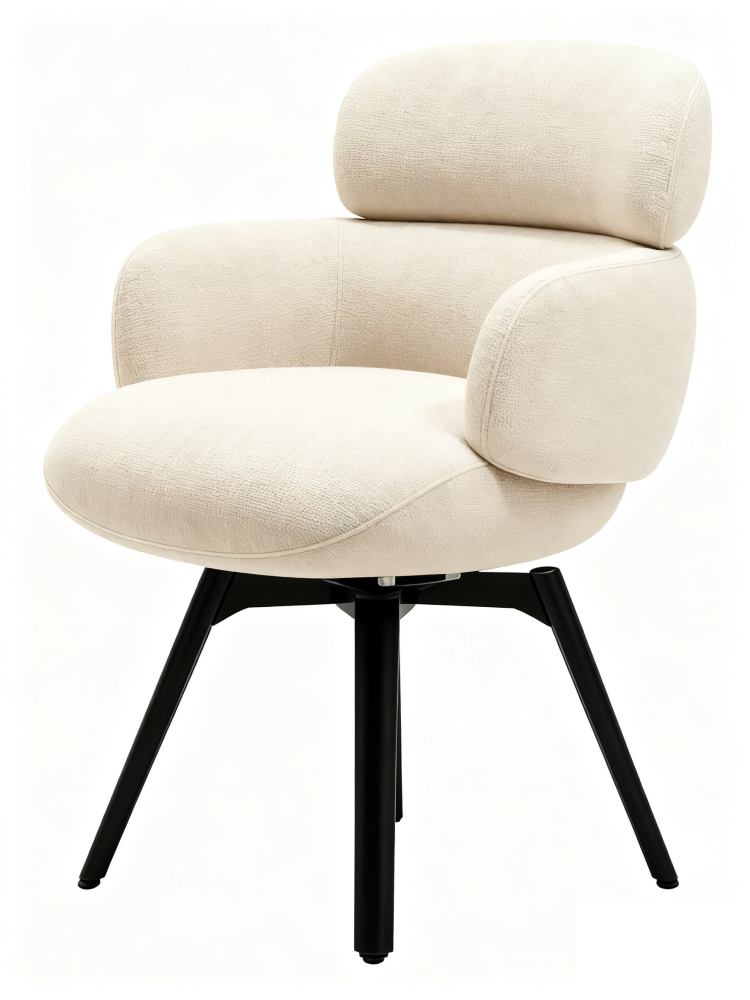 • The armchairs, with their refined proportions, are all available with a fixed or swivel base, the latter with a cylindrical form that lends a sophisticated decorative appeal.