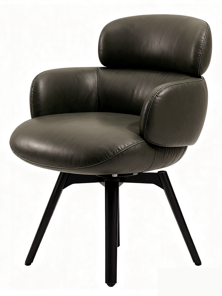 • The armchairs, with their refined proportions, are all available with a fixed or swivel base, the latter with a cylindrical form that lends a sophisticated decorative appeal.