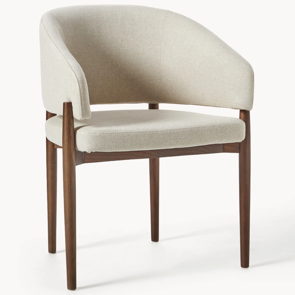 Modern Upholstered Wooden Chairs, Chairs With Foot Caps, Elena Crème