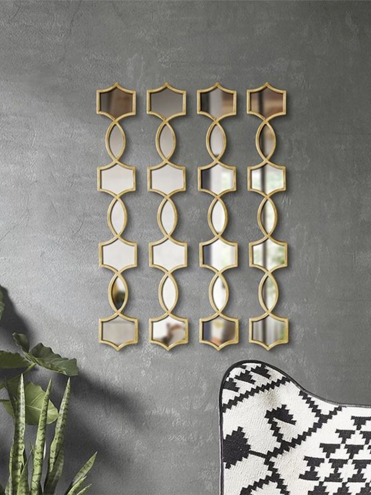 • What makes these wall decoration mirrors so special is their versatility in arrangement. You can choose to place five mirrors in a row for an elongated and refined look. This arrangement works perfectly above a sofa, dining table or sideboard. The symmetry of five mirrors adds a sense of balance and harmony to your space.