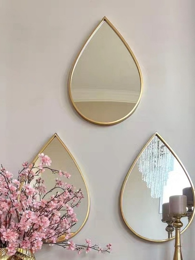 (Set Of 3)70 X 40 Cm Gold Teardrop Mirror With Mounting Hooks