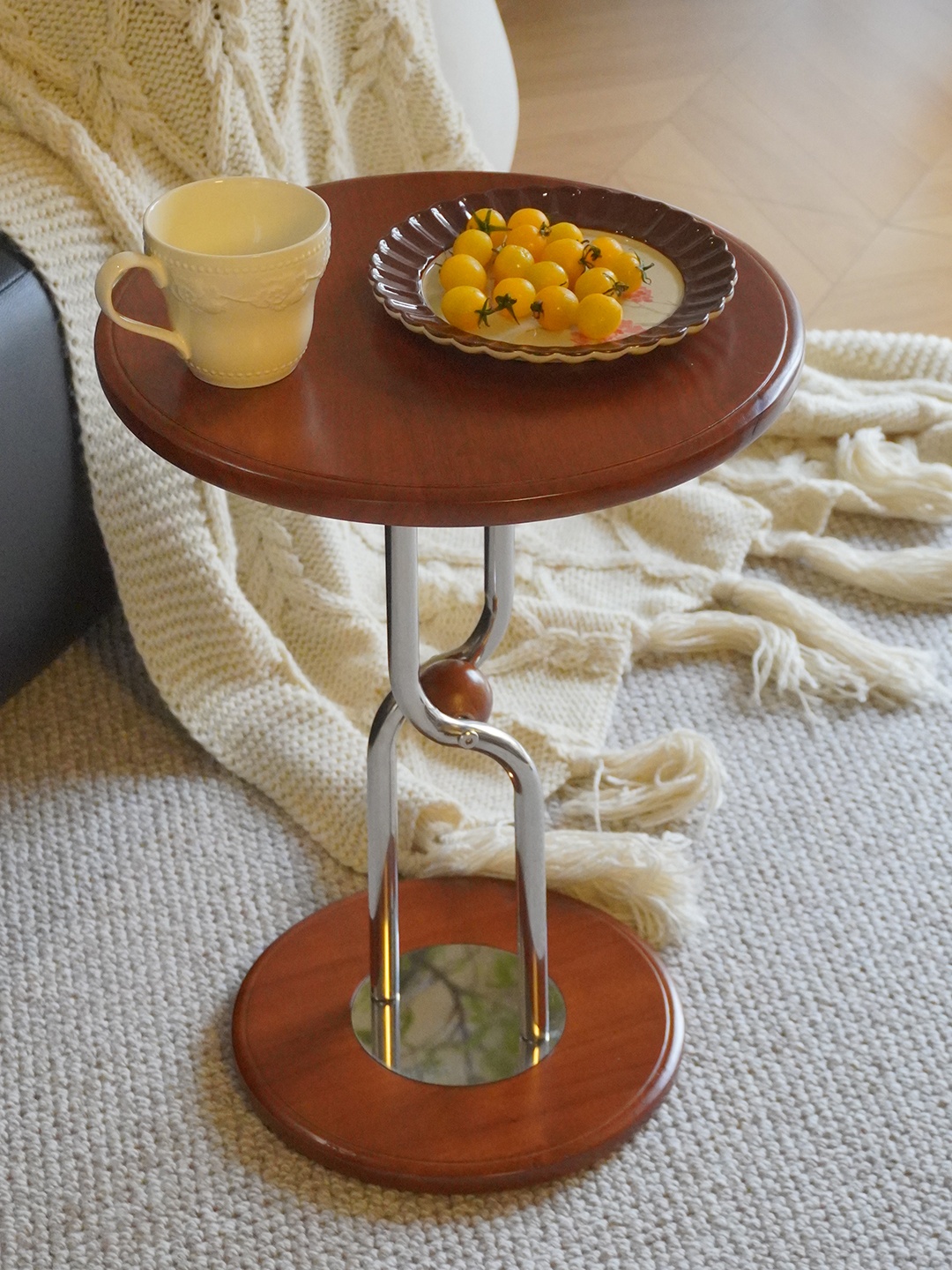 Solid Wood Side Table Small Round Table For Living Room
