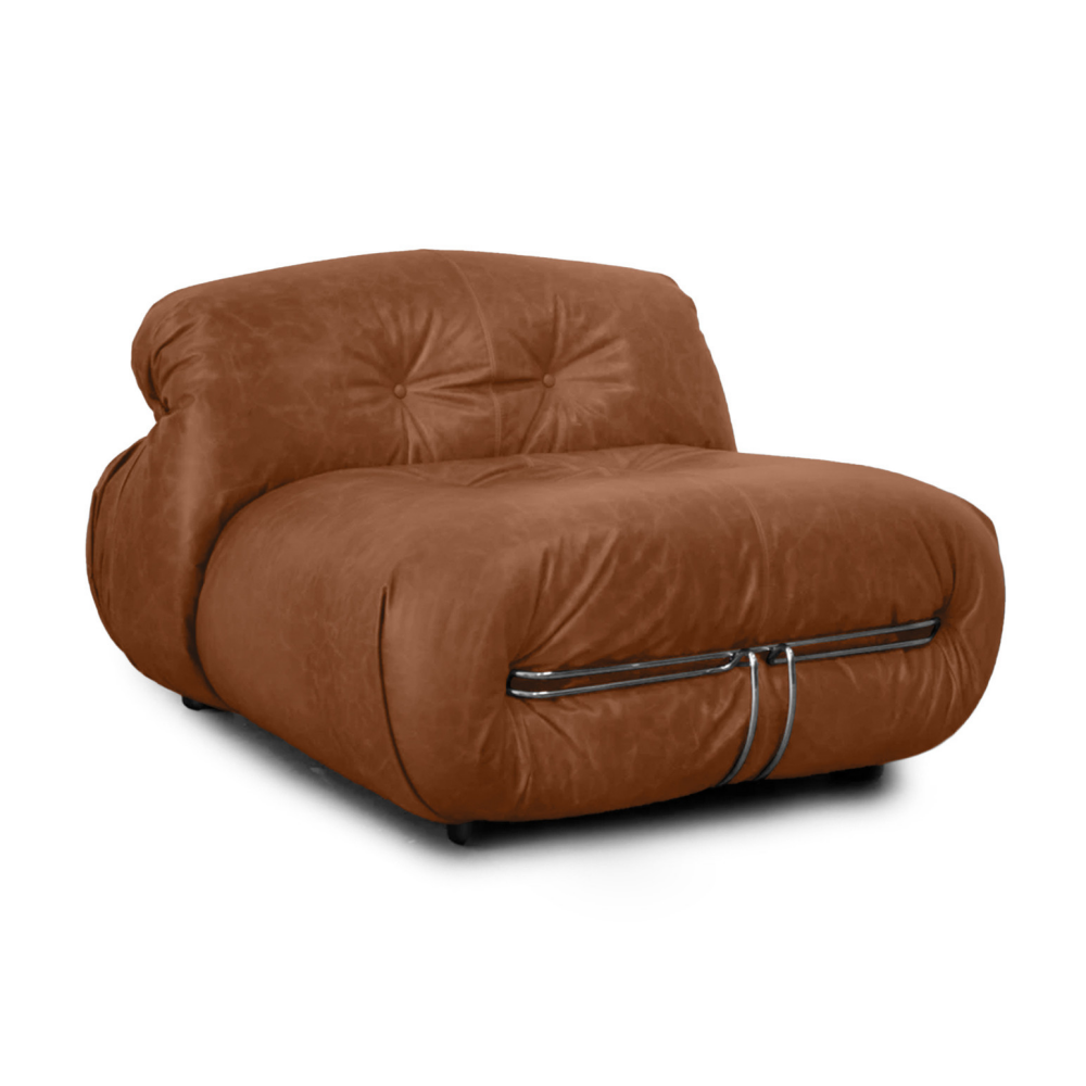• The Soriana Armchair Chaise Longue from the Italian brand Cassina was designed back in 1970 by Afra and Tobia Scarpa. The iconic lounge chair set the tone for a new type of upholstered furniture as it lacks a typical internal metal structure and is instead held together by the metal frame on the outside. The padding consists of BioFoam, a plant-based foam made of polystyrene and wadding fiber, developed by Tobia Scarpa and Cassina LAB. The material allows shaping the products into its unique design language that gives a relaxed but at the same time sophisticated feeling in the home. The padding is a more environmentally friendly alternative to the polyurethane used previously, one of many steps in Cassina's sustainability work and vision for the future. The comfortable seat consists of 100% recycled fibers produced from PET from Plastic Bank.