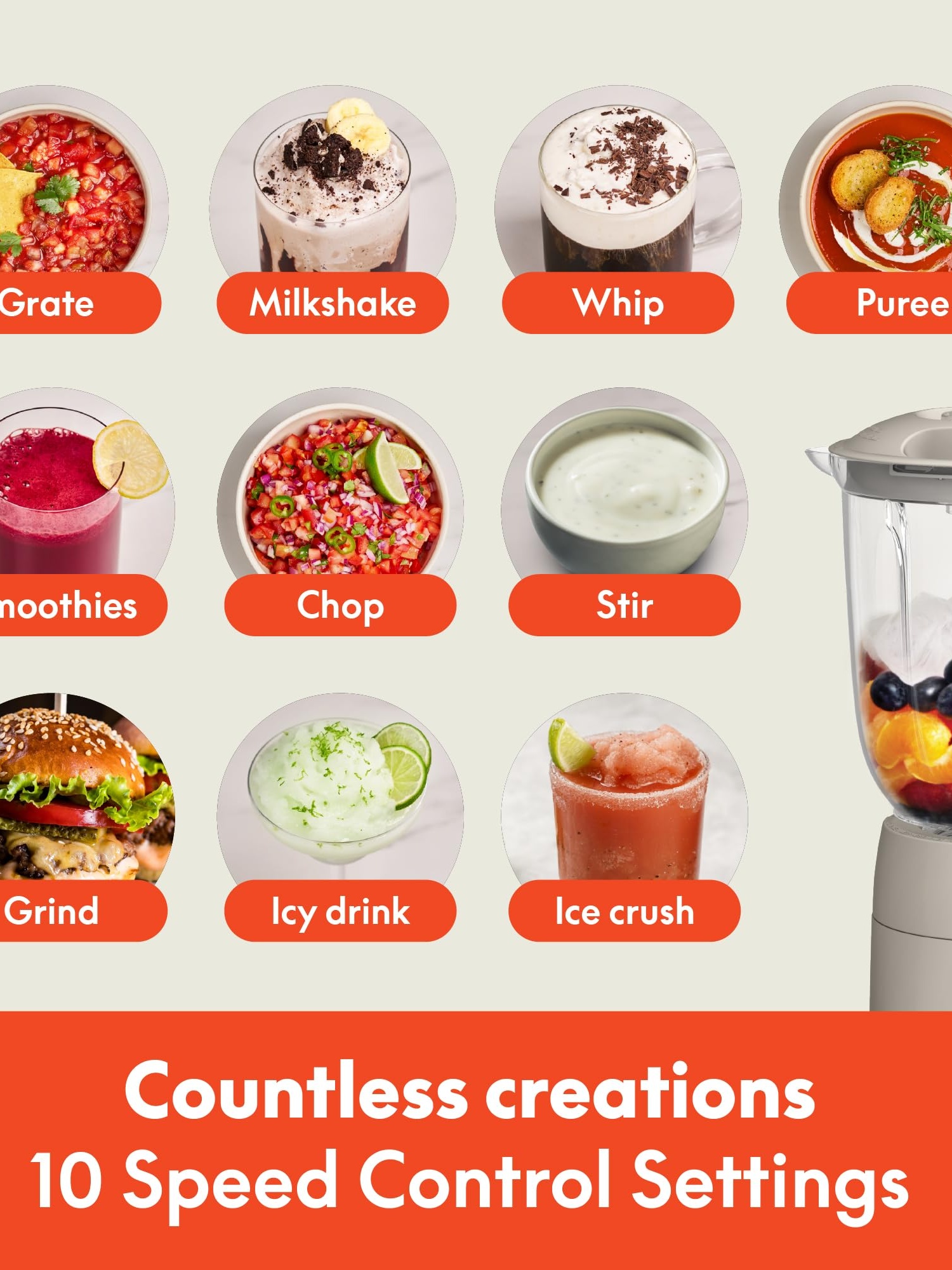 • 10-Speed Control: Customize your blending experience with 10 powerful speed settings, allowing you to blend, puree, liquify, or crush ingredients to perfection. Whether you’re making a protein shake or a frozen drink, the options are endless