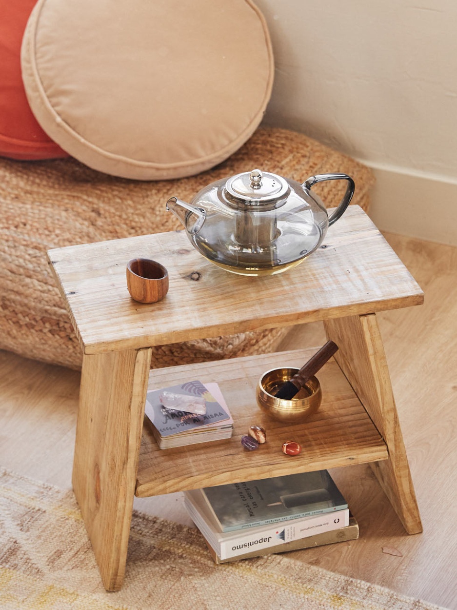 This table not only connects you with a part of nature but also offers an additional storage shelf, perfect for storing textiles, books, or any other decorative or functional item.