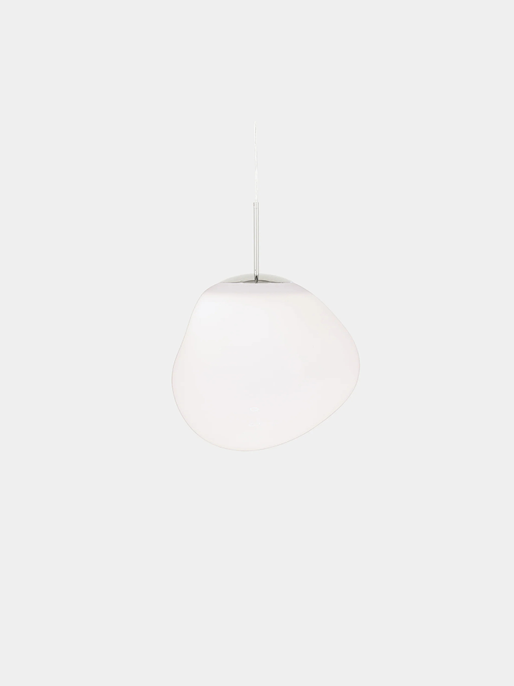 • Melt pendant is a beautifully distorted pendant with a matching ceiling rose. Featuring an integrated LED module, it creates a mesmerizing hot-blown glass effect when on and a mirror-finish effect when off. Made in Germany using high-tech manufacturing, it evokes molten glass or the interior of a melting glacier.