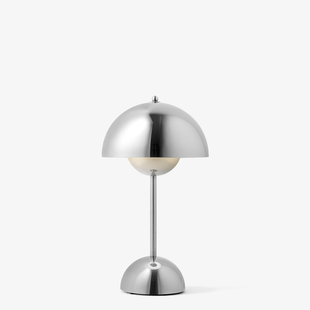 • Reflecting the same iconic design as the Flowerpot table lamp, the petite proportions of the VP9 lamp have the added advantage of being mobile. The deliberately lightweight design and cordless feature allow the lamp to be easily moved from table to counter as needed.