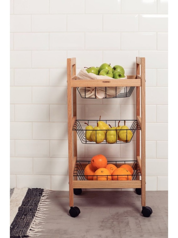 Keep your fruit organized in the Tramontina Utilínea Teak Wood Fruit Bowl with 3 Baskets and get even more practicality in your daily life. The piece is compact and has a unique design, in addition to having wheels that make it easier to move around.