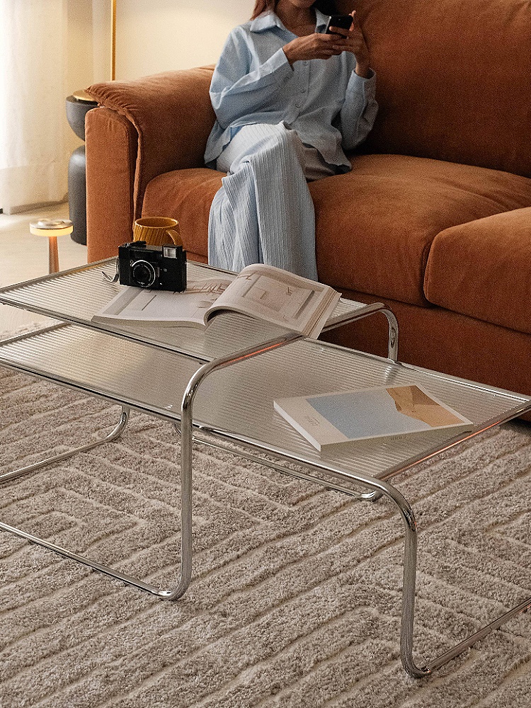 • A sleek blend of modern elegance and functional design, the Tavio Nesting Coffee Table brings versatility to your living space. Featuring fluted tempered glass tops, this duo offers a sophisticated play of texture and light. The chrome-plated steel frame adds a refined touch, ensuring durability while maintaining a contemporary aesthetic. Whether used together for a layered look or separately for flexibility, the Tavio Nesting Coffee Table effortlessly complements any modern home.