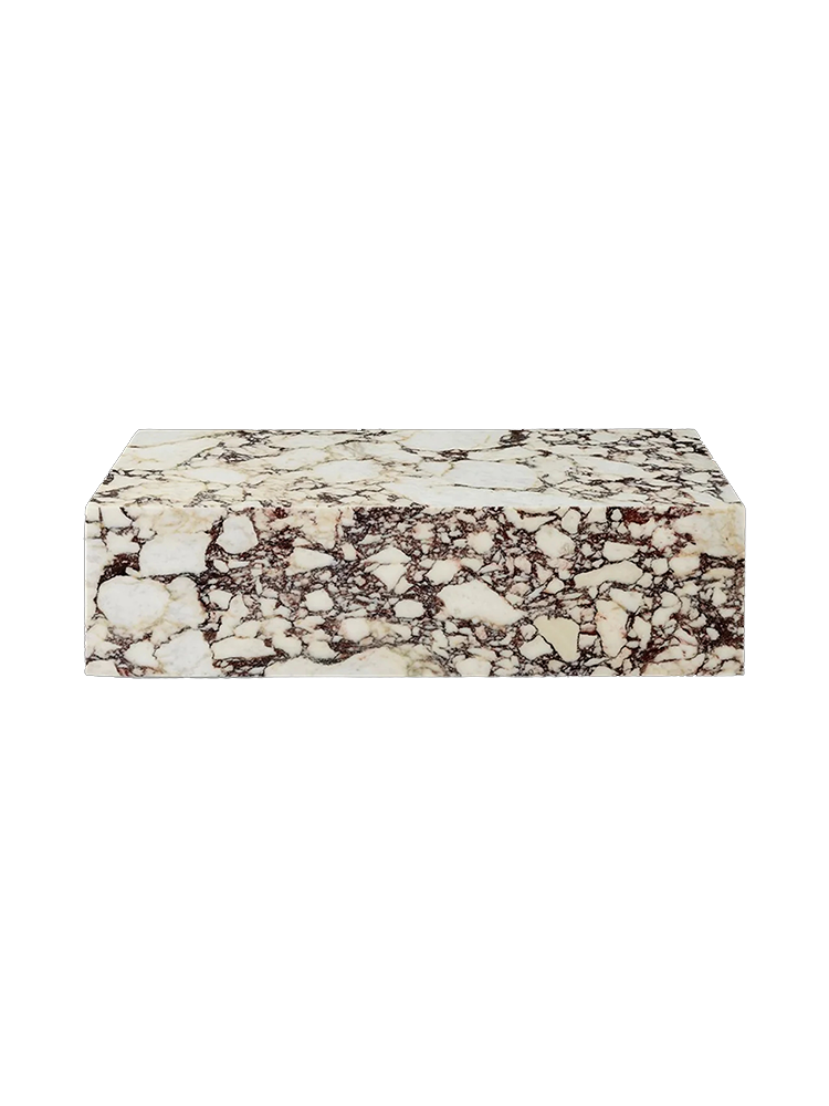 • Equal parts beautiful and timeless, the Plinth Collection comprises multi-functional podiums for every space. Profiling the beauty of natural materials and uncompromising craftsmanship, each is precision assembled to reveal the inherent beauty and uniqueness of the material. Perfectly symmetrical, the sharp, clean silhouette of the design stands in striking contrast to the unique veining and patterns of the textural Kunis Breccia stone and light-reflecting marble, offered in five unique varieties, used to create the design.