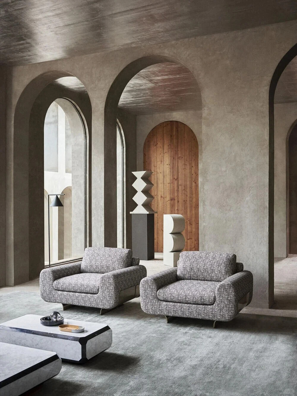 The Gran Plié seating collection by Thierry Lemaire consists of a series of two- and three-seater sofas and an inviting armchair. The visually light metal frame, which recalls the balletic plié position, embraces padded elements to create a pleasing harmony of soft curves. Ideal for both classic and contemporary decor schemes, each piece is a finely-calibrated balance of volumes designed for stylish comfort.