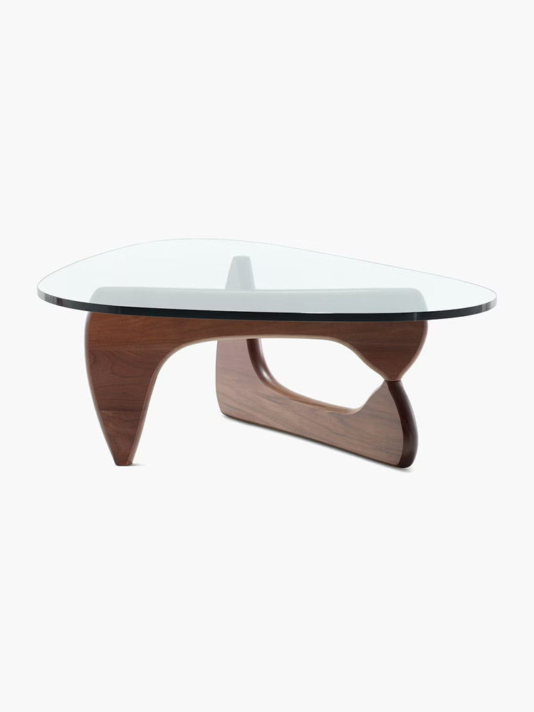 • Noguchi Coffee Table was designed by Isamu Noguchi in 1944. A 2-cm-thick glass top with rounded edges rests on two identical wooden parts symmetrically placed at right angles to each other. The base is made of wood and is available in black ash, maple, and walnut.Noguchi's work is artistically linked to abstract expressionism, and his design style came to have a great influence on 1950s design. His Coffee Table is today one of the most popular and iconic pieces from Vitra. Noguchi himself referred to the coffee table as the best piece of furniture he had ever designed.