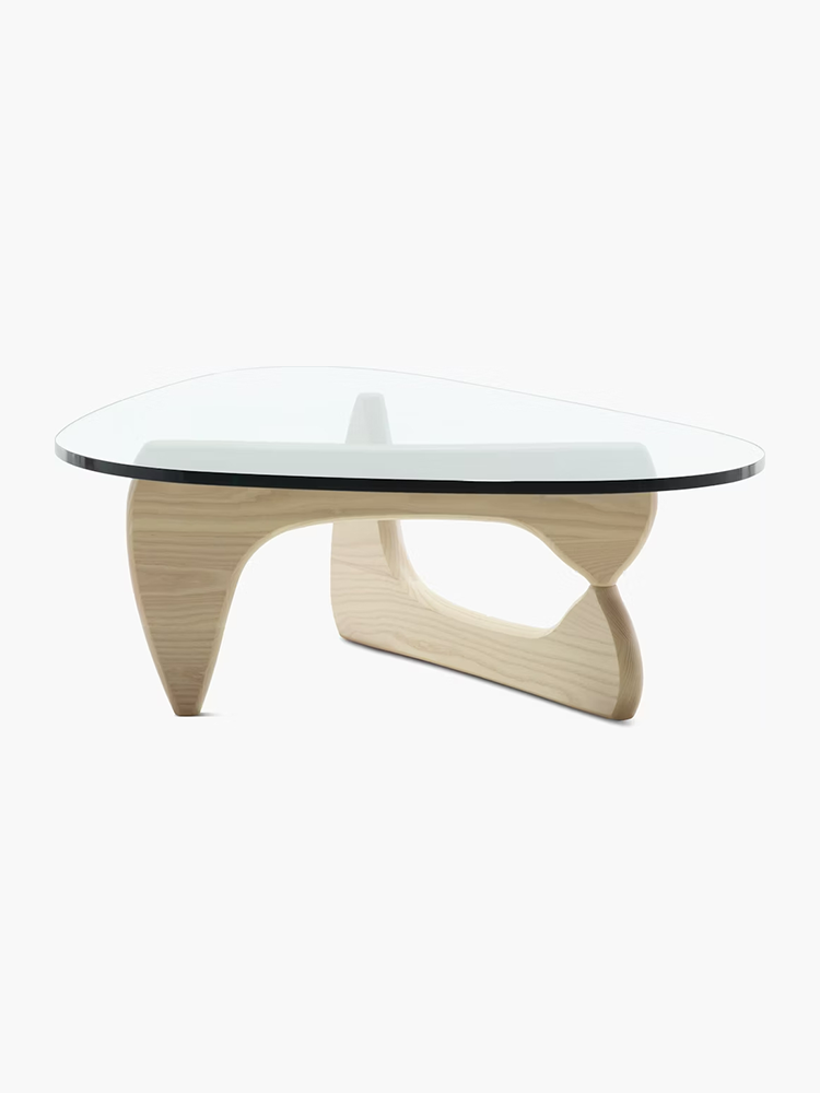 • Noguchi Coffee Table was designed by Isamu Noguchi in 1944. A 2-cm-thick glass top with rounded edges rests on two identical wooden parts symmetrically placed at right angles to each other. The base is made of wood and is available in black ash, maple, and walnut.Noguchi's work is artistically linked to abstract expressionism, and his design style came to have a great influence on 1950s design. His Coffee Table is today one of the most popular and iconic pieces from Vitra. Noguchi himself referred to the coffee table as the best piece of furniture he had ever designed.