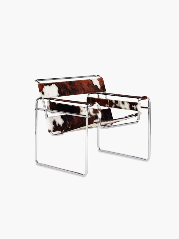 • The iconic Wassily Chair is constructed of leather or canvas straps stretched across a tubular steel frame—originally inspired by the bends in a bicycle. It was the first chair of its kind in 1925, and it remains a celebrated symbol of modernism today.