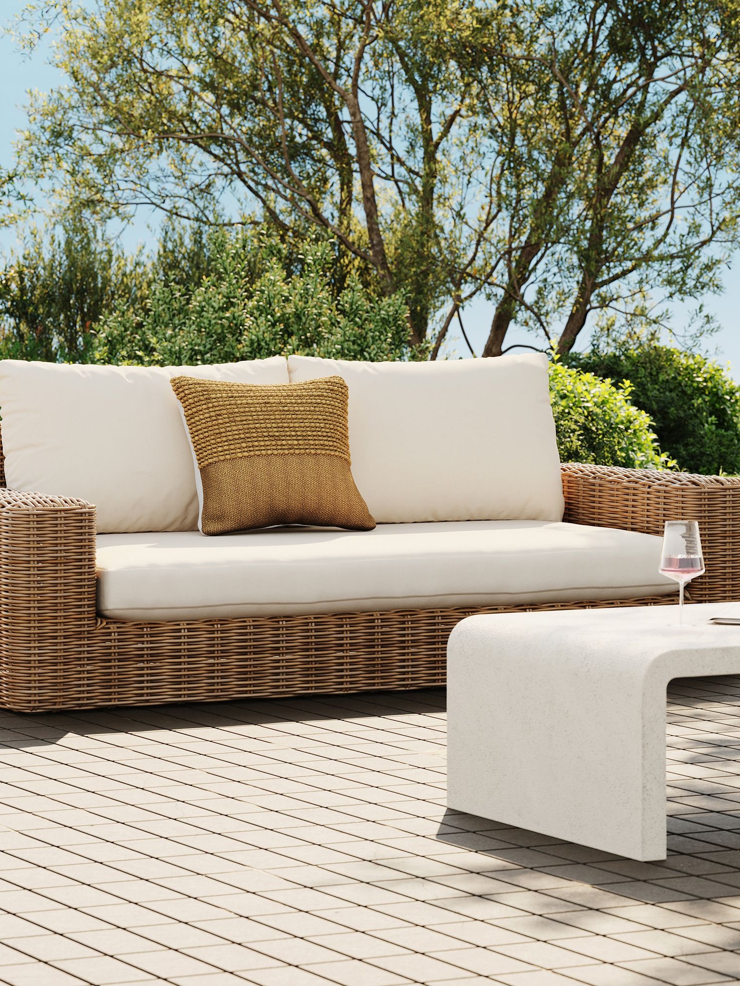 • Handwoven all-weather wicker and metal frame in a Natural finish.
